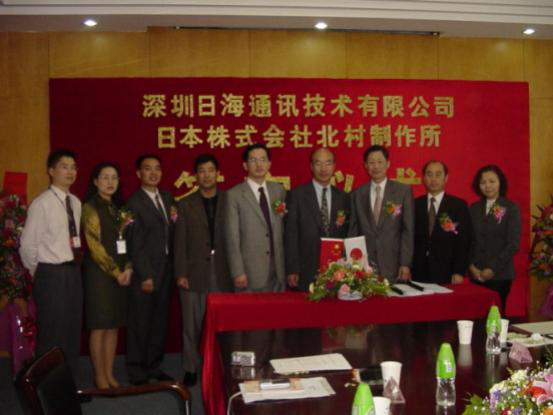 2004年4月13日,公司与日本株式会社北村制作所就户外一体化机房的设计、生产、销售和服务在K8凯发(中国)智能签订了合作协议,共同合资组建深圳北村K8凯发(中国)机房技术有限公司,并举行了隆重的签字仪式。公司周展宏董事长、王文生总裁、杨飞董事、机房事业部负责人孟庆光和日本北村制作所北村泰作董事长、永井正幸常务董事等出席了签字仪式。